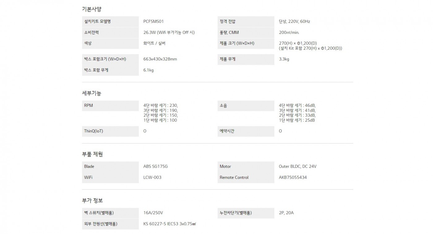 [단종]LG WHISEN 실링팬(낮은 천장고형)