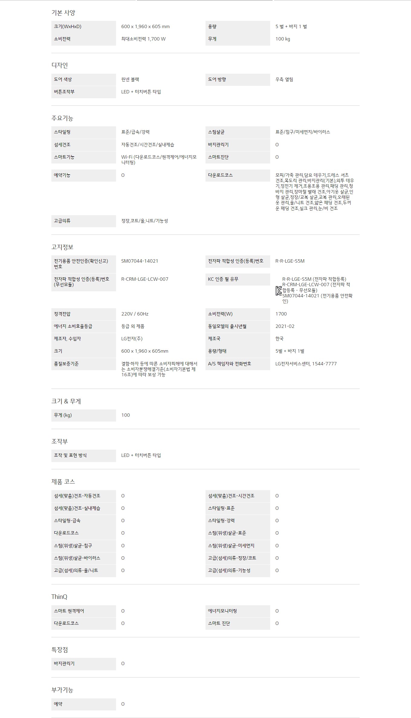 크기(WxHxD) : 600 x 1,960 x 605 mm