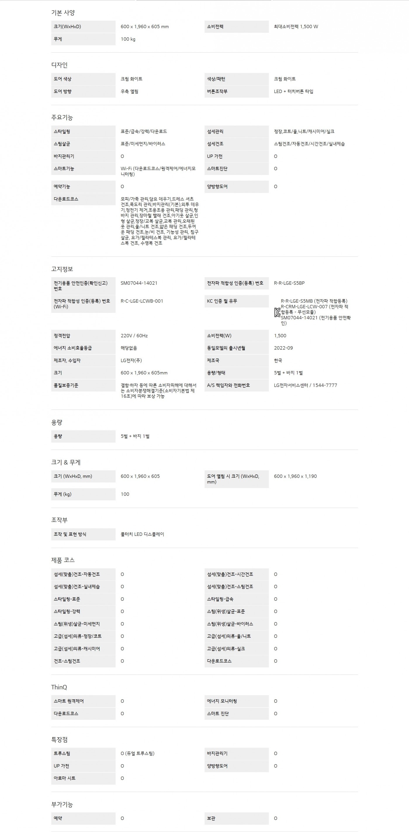의류 관리에서 건조까지 진짜 스타일러는 스타일러 뿐입니다.크기(WxHxD) : 600 x 1,960 x 605 mm용량 : 5 벌 + 바지 1 벌
