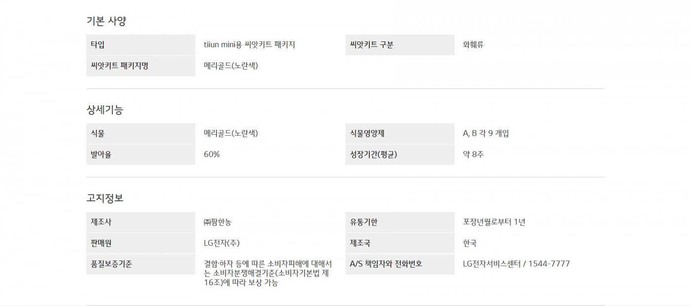 LG 틔운 미니용 씨앗키트 패키지 (메리골드 노란색)