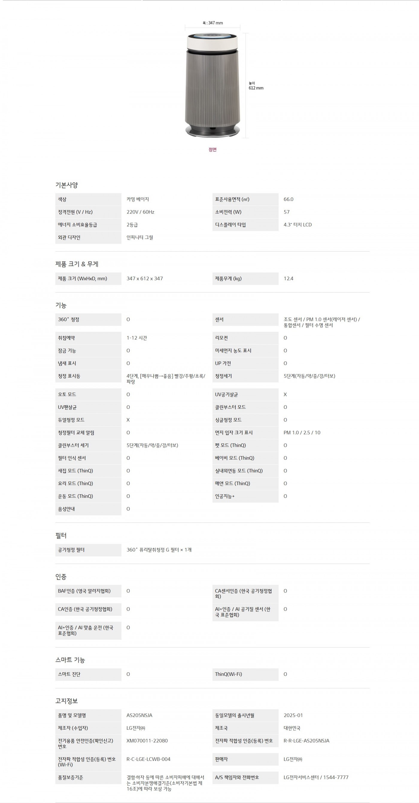 LG 퓨리케어 AI 오브제컬렉션 360˚ 공기청정기 (G 필터)