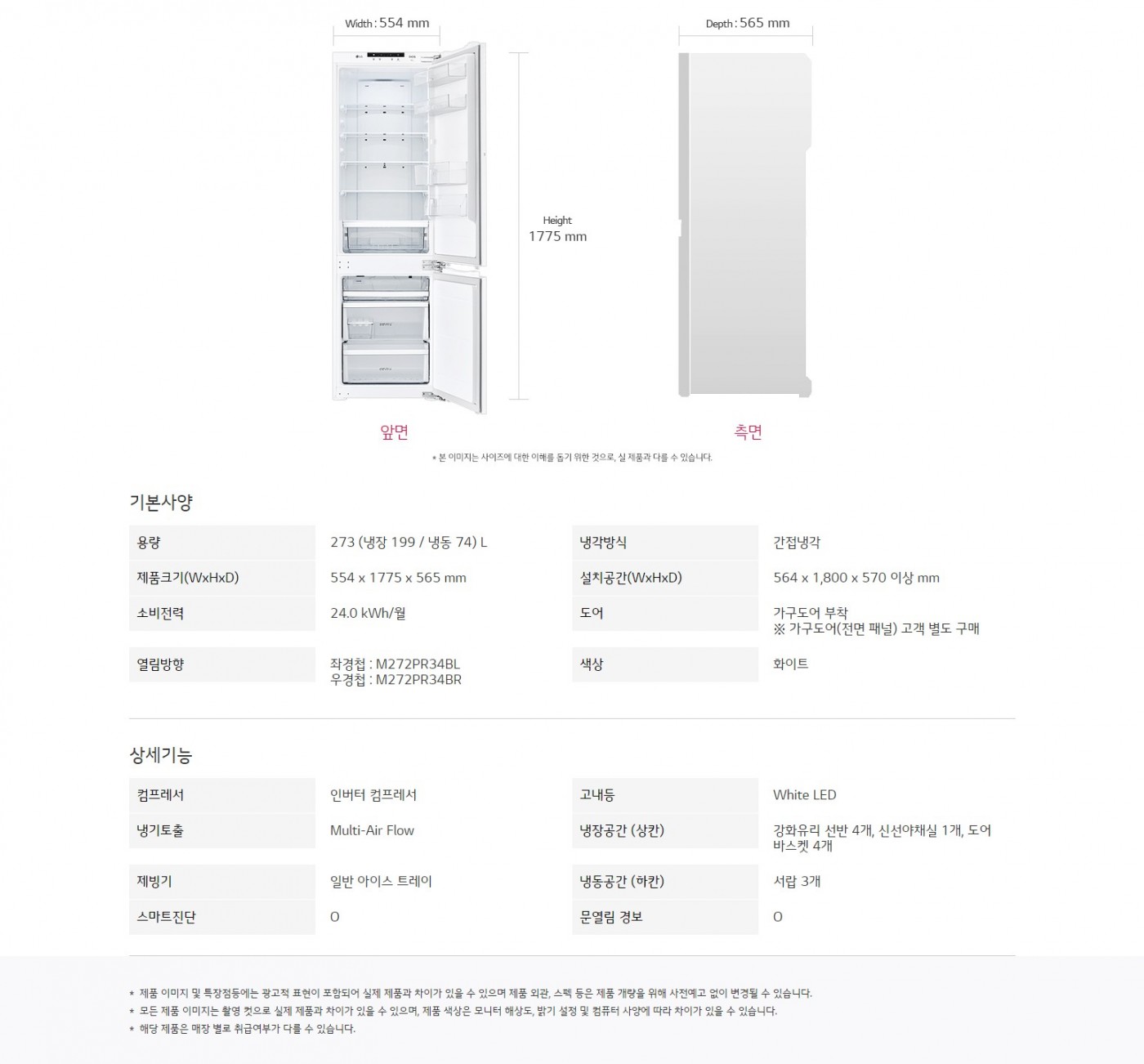 빌트인가전 콤비냉장고 M272PR34BL/R