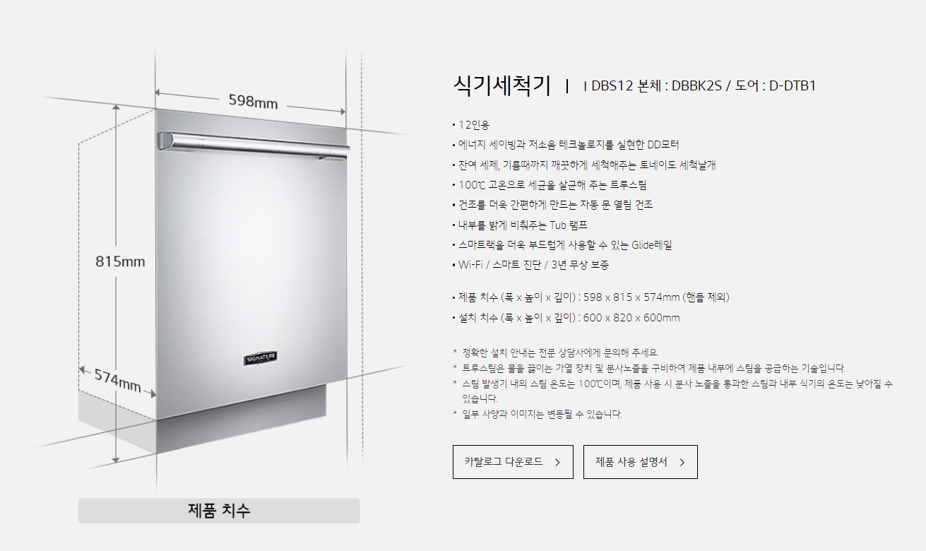 크기(폭 x 높이 x 깊이) : 598 x 815 x 574mm (핸들 제외)