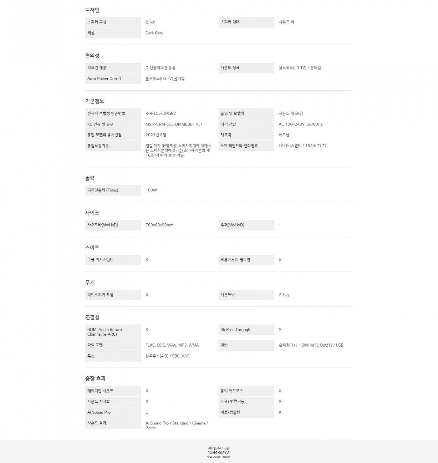 스피커 구성 : 2.1ch