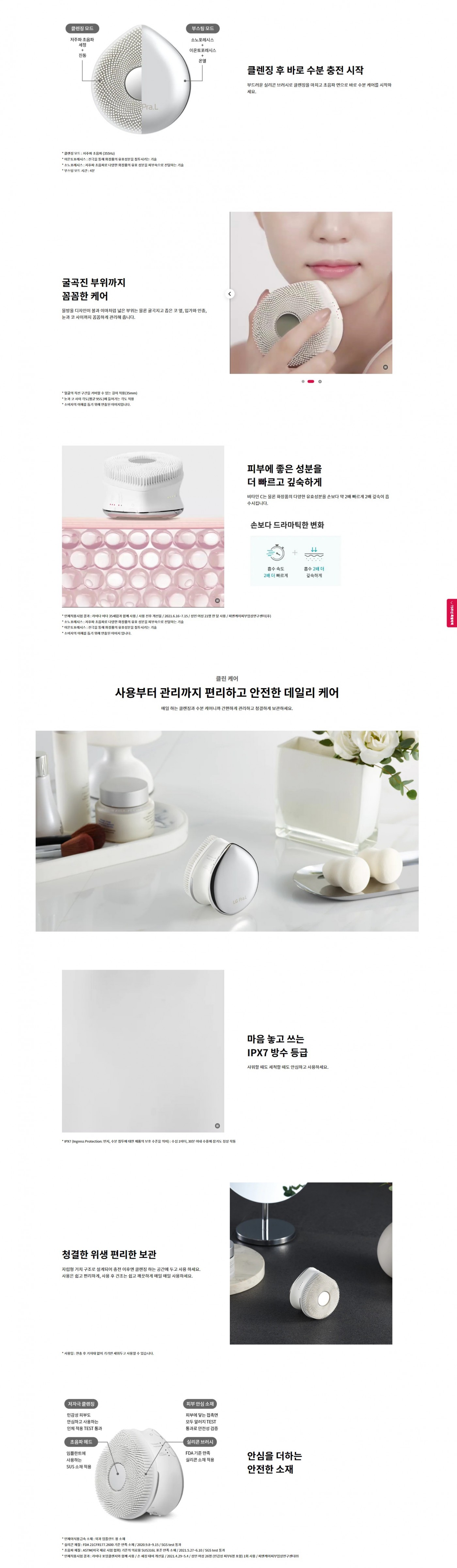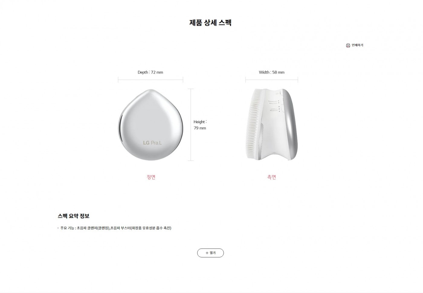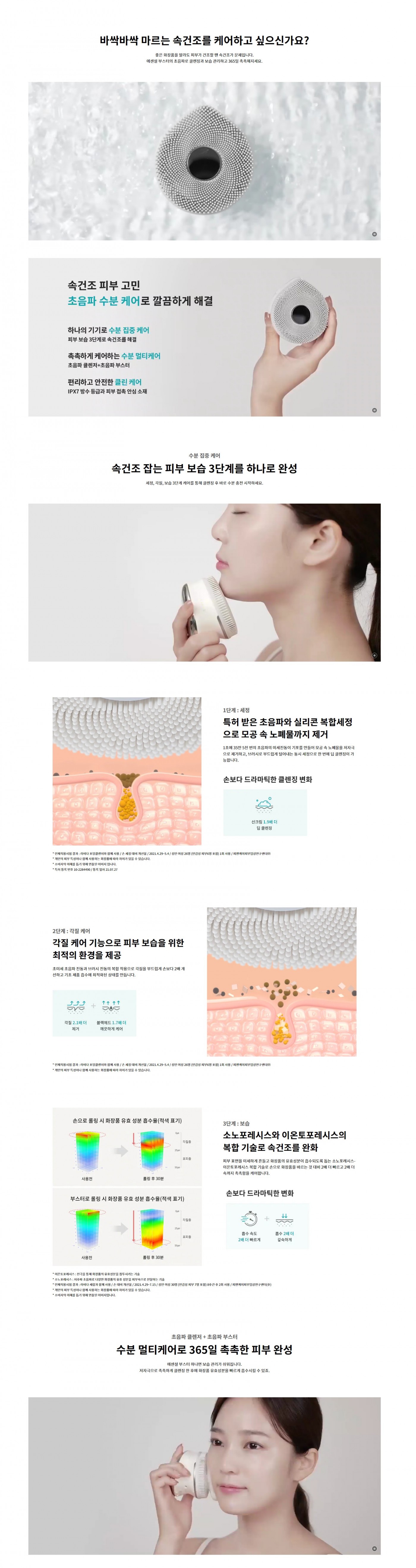 주요 기능 : 초음파 클렌저(클렌징),초음파 부스터(화장품 유효성분 흡수 촉진)